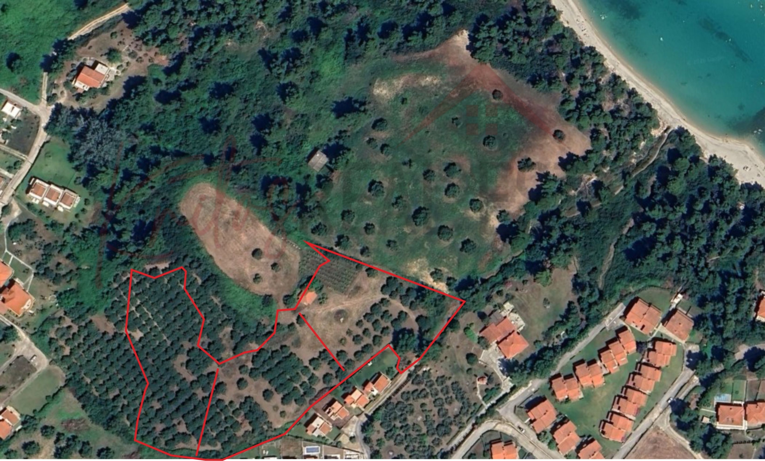 Έχει πρόσβαση από άσφαλτο. Το οικόπεδο εφάπτετε με δάσος και έχει θέα στον Τορωναίο κόλπο. Βρίσκεται σε ήσυχη περιοχή.